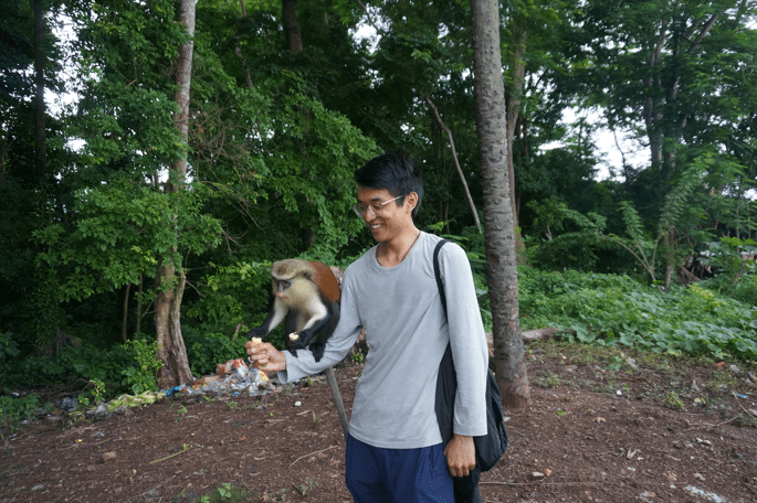 Making friends with a monkey at Tafi Atome in the Volta Region